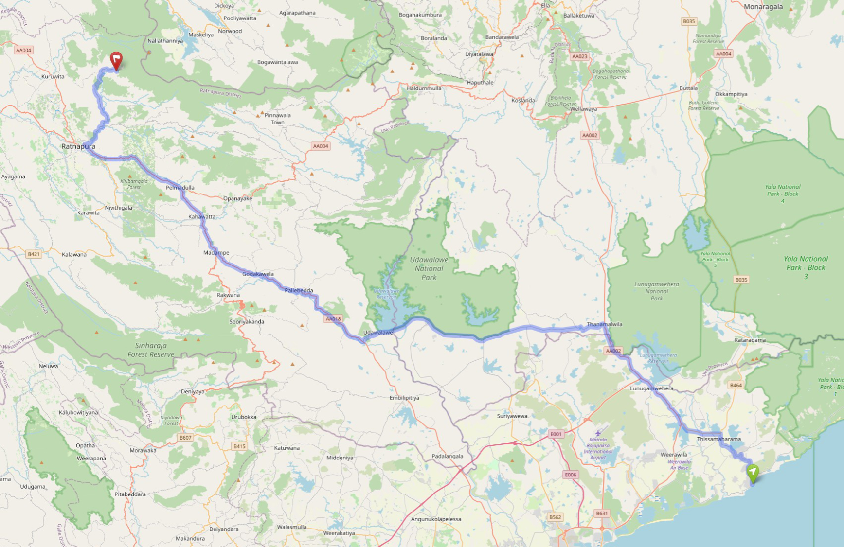 dass ich möglichst viel vom Ballungsraum umfahre. Ab Radnapura geht das Gewimmel und Gehupe los. Ich spiele die 35 Ps meiner Honda voll