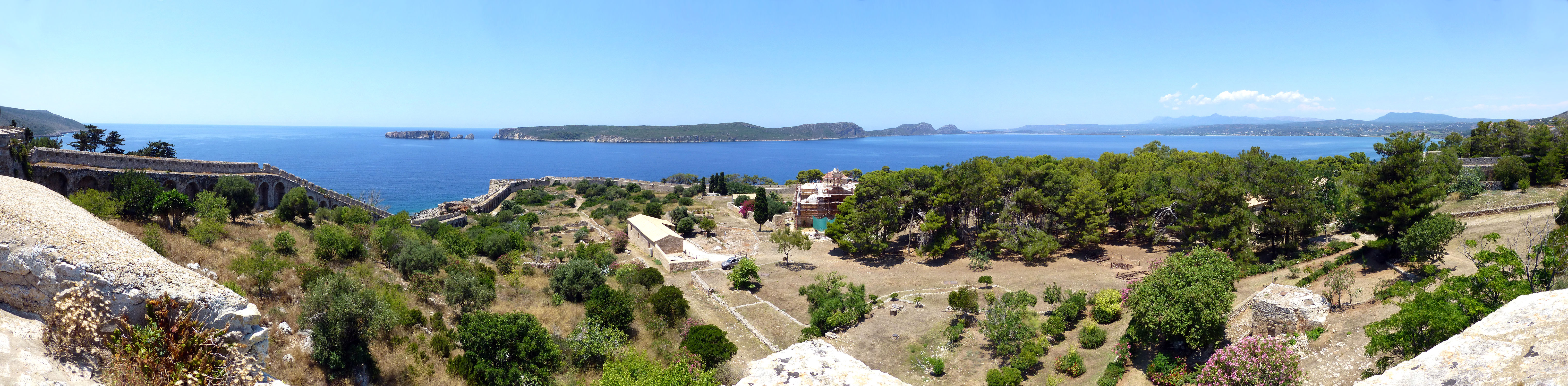 Anhöhe südlich an Pilos grenzend gelegen seit dem Mittelalter den Zugang zur grossen Bucht