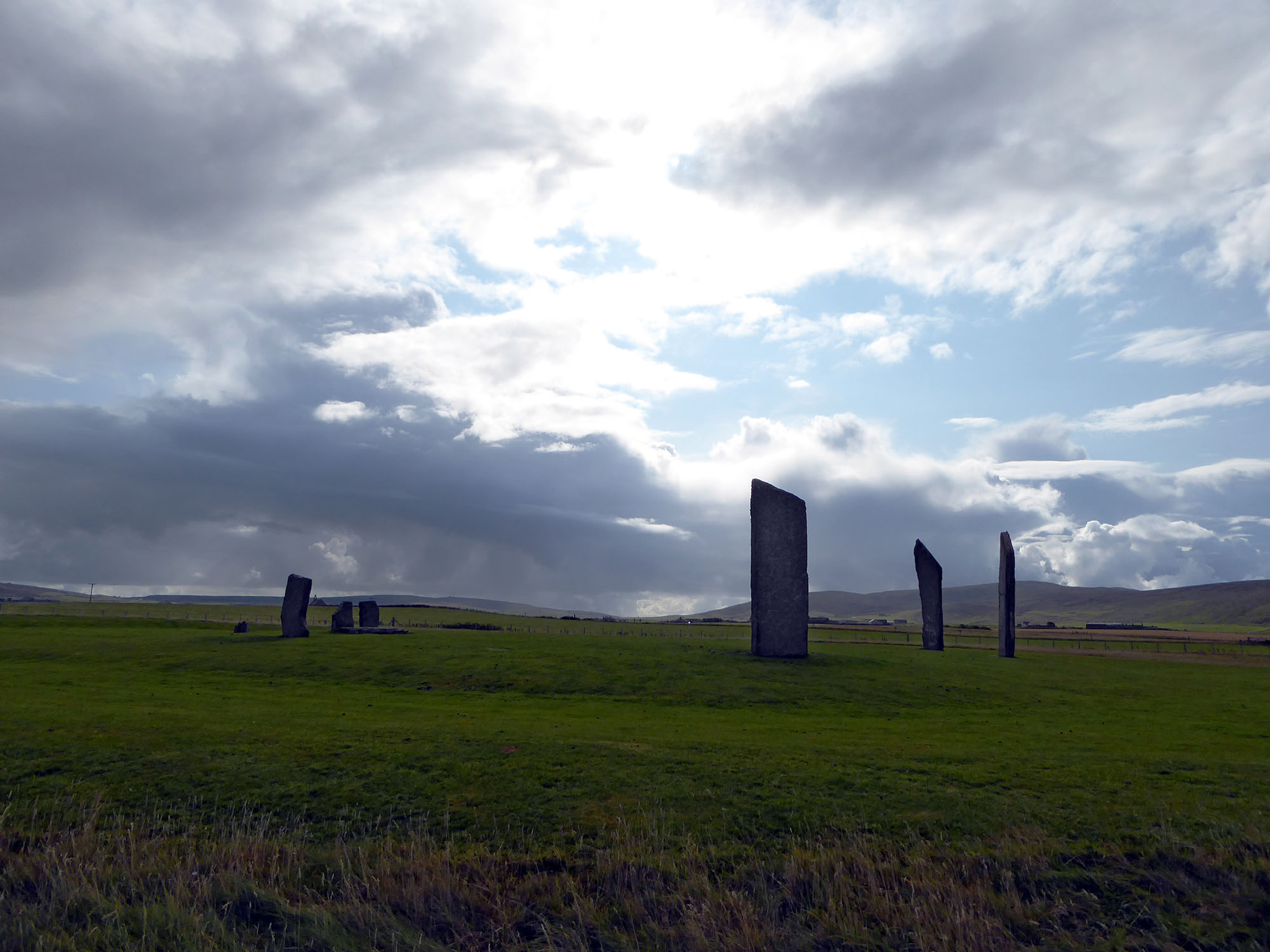 Rückwirkend kann ich sagen, dass dieser Tag im Zeichen der Häuser stand. Häuser der Götter mit den ihnen gewidmeten Steinkreisen und die Häuser derer Erbauer unter Tage, beides über 4000 Jahre alt aus der Jungsteinzeit. Sogenannte Brochs, Steintürme mit Wehrgräben aus der Zeit um Christi Geburt. Langhäuser der Wikinger um das Jahr eintausend auf einer nur bei Ebbe zugänglichen Insel. Das Zeitfenster zu deren Besichtigung beträgt etwa 3 Stunden. Möglicher Wohnort Thorfinns der Mächtigen. Ist man zu spät auf dem Rückweg hilft nur noch die Küstenwache oder eine Nacht im Freien. Ein Herrschaftshaus vor hundertfünfzig Jahren. Das Ganze abgeschlossen hat der Friedhof von Kirkwall mit den Häusern der Ewigkeit. Spannend weil hier uralte Gräber sind. Sie werde nicht wie bei uns nach 25 Jahren aufgehoben. Äusserst traurig was teilweise aus den verwitterten Grabsteinen an Familiengeschichte zu lesen war. Verlust von Neugeborenem und junger Ehefrau innerhalb eines Jahres... Sohn verschollen auf dem Meer mit 21 Jahren... Umgekommen auf dem Schlachtfeld an der Somme im ersten Weltkrieg... Augenfällig war auf jeden Fall das vor hundert Jahren maximal die Hälte der Bevölkerung älter als 50 Jahre wurde. Kein Vergleich zur heutigen Lebenserwartung. Hier die Bilder zum Tag.