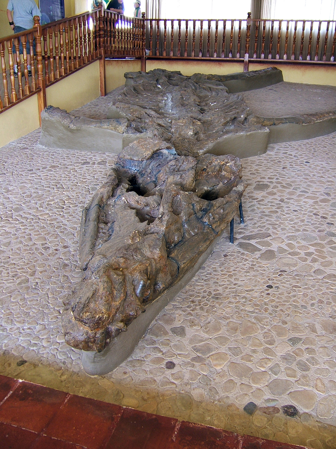 beim Pflügen gefundenes Kronosaurierskelett gebaut wurde. Scheinbar haben sie hier