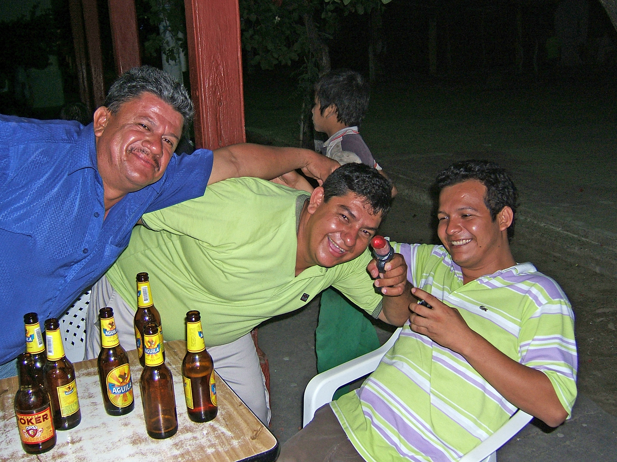 offerieren. Nach einigen Bier wird die Stimmung ausgelassen und einer zieht eine Pistole aus dem Hosenbund. Zu meiner