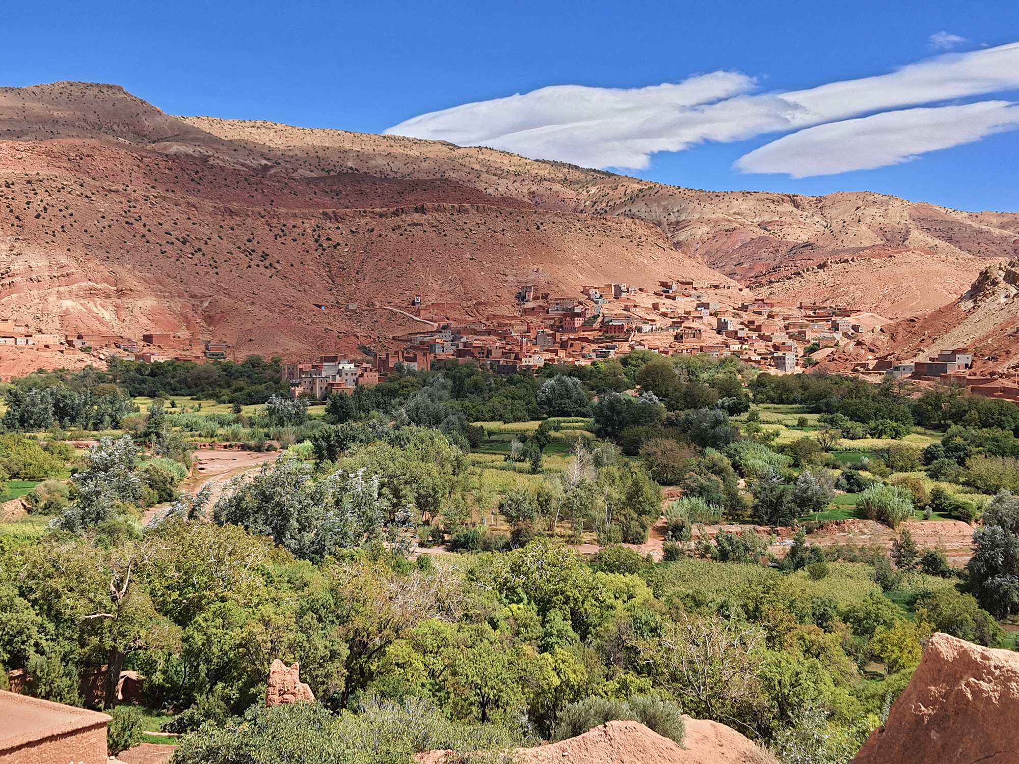 Schlucht und die Landschaft wird wieder flacher und breiter. Kurz darauf bin ich in Ait Benhaddou und halte um nachzusehen, wo meine