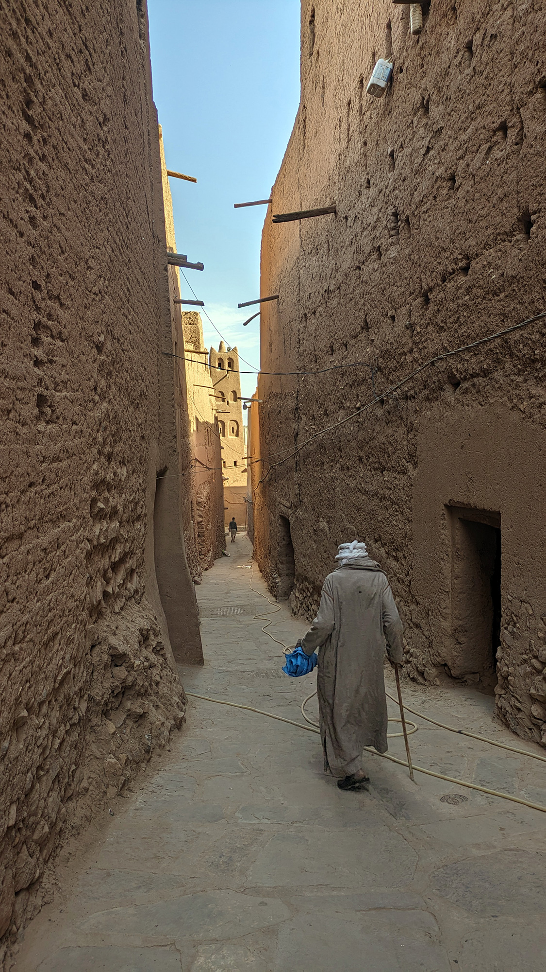 Das Tal öffnet sich und vereint sich mit einem weiteren. Nach einigen Kilometern fahre ich durch Ait Ben Haddou. Ein kleinwenig