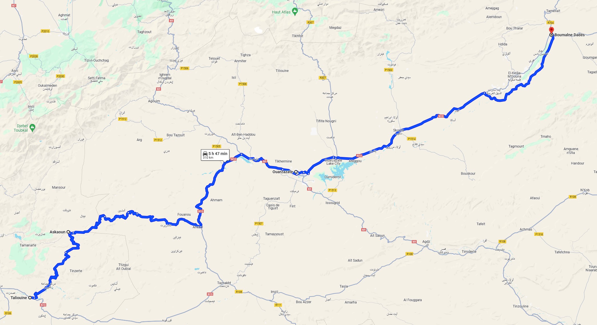N'Kob und dann nach Zagora. Das werden schlussendlich an die dreihundert Kilometer. Die erste Etappe bis Boulmane Dades führt