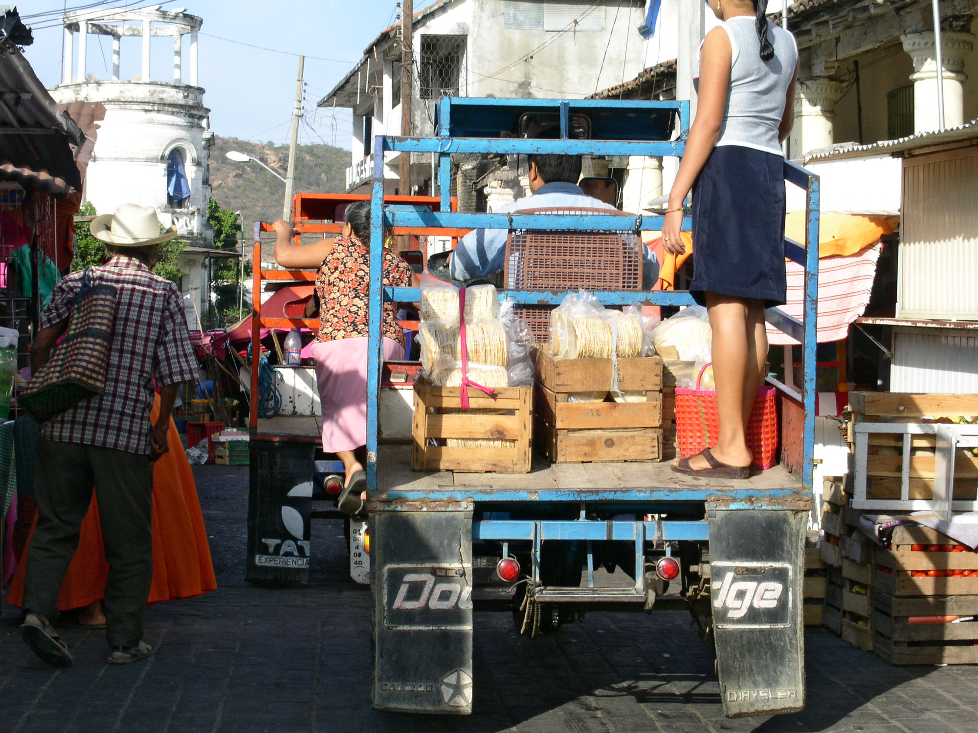 Von der Umgebung auf der vierstündigen Reise nach San Christobal bekam Reni nicht viel mit. Bei geschlossen Augen kämpfte mit mentaler Stärke gegen die Übelkeit. Selbst mein Magen hatte mit der endlosen Kurverei und der Luftfederung des Busses zu kämpen. Die Spanierin einige Reihen hinter uns verlor diesen. Zum Glück funktionierte die Lüftung ausgezeichnet! Der bei unsrer Ankunft noch blaue Himmel war anderntags wolkenverhangen. In diesem auf 1700 Meter gelegen Ort sind die Nächte bitterkalt. Zu zweit und mit genügend Decken liess es sich aber aushalten. Die heimliche Hauptstadt der Chiapanecos pflegt und restauriert ihre kolonialen Bauten nicht nur um die Plaza-Mayor. Vom zentral gelegenen Hügel hat man einen guten Überblick. Geprägt von spielten wir mit dem Gedanken ein Auto zu mieten, und setzten das anderntags in die Tat um. Mit einem VW Käfer, hier Sedan genannt, kurvten wir tags darauf in die umliegenden Berge in ein Indigen-Dorf. Der Anblick der kurzen Hosen der Männer in ihrer Tracht bei permanentem Nieselregen liess mich frieren. Die wolkenverhangene Gegend lud uns nicht zum Verweilen ein, und so durchstöberten wir am Nachmittag noch ein wenig den Markt von San Christobal. Wo Mais und Bohnen zur Hauptnahrung zählen, ist die Auswahl entsprechend. Chilis gehören natürlich dazu. Im Zuge der Rationalisierung werden Tortillas heute von Maschinen gefertigt. Fleisch wird zum Glück nicht immer so unappetitlich präsentiert. Die Kirche beim Handwerksmarkt zeigt sich wie vielerorts in Zentralamerika, hinten pfui, vorne hui.