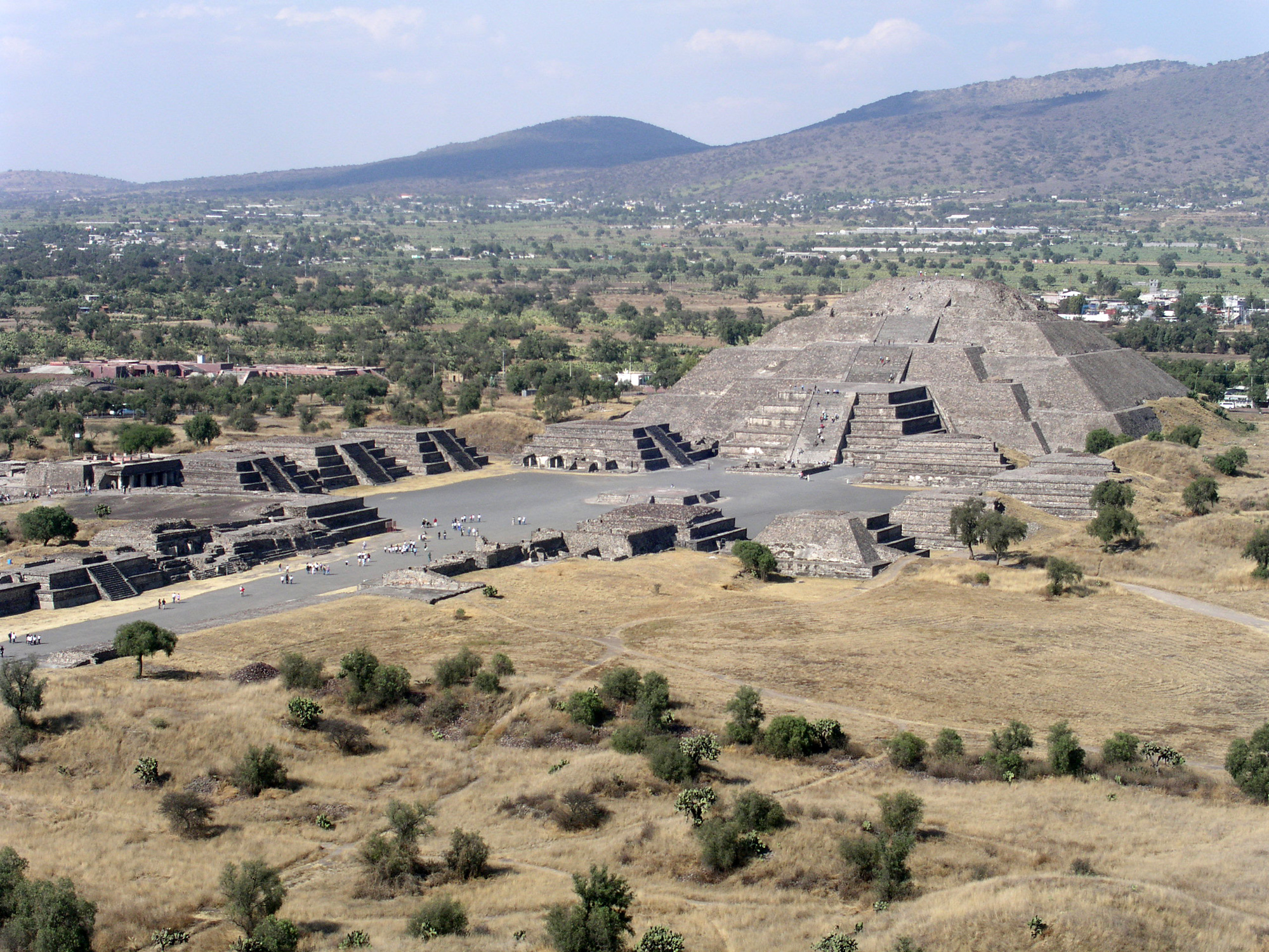 Unser letzter Tag in Mexico! Per Metro und Bus fahren wir in die zwanzig Kilometer entfernten Aztekenruinen. Kein Smog, stahlblauer Himmel, Wärme! Es gilt alles noch einmal aufzusaugen, vollständig zu verinnerlichen. Die Tempel sind nach jenen in Ägypten die grössten bekannten Pyramiden der Welt. Welcher Glaube hat die Menschen zu solchen Anstrengungen befhähigt. Der Aufwand zur Erreichung der Symmetrie entlang der Hauptstrasse ist gewaltig. Die drei Haupstrukturen, die Zitadelle, Der Mondtempel und der abschliessende Sonnentempel sind verständlicherweise nicht doppelt ausgeführt. Die lästigen Souvenirverkäufer wimmle ich mit erworbener Übung ab. "Originale Fundstücke" kaufe ich wegen Respekt und Angst vor "bösen Folgen" sowieso nicht. Am Fuss des Mondtempels spührt man etwas von der Ehrfurcht die hier einmal geherrscht hat. Um die Heiligtümer wohnten zur Blütezeit um 700 nach Christus auf zwanzig Quadratkilometern achzigtausend Menschen. Lange sitzen wir auf den Tempelspitzen und geniessen die Aussicht. Das Gelände wird leider vor Sonnenuntergang geschlossen und so brechen wir auf.