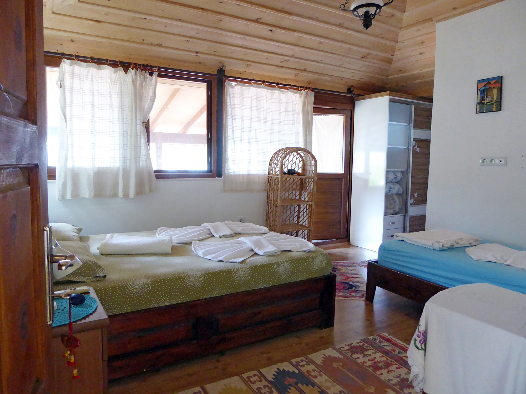 der Türkei ein einfaches Bungalow für 60 Franken mit Halbpension. Nach der langen Autofahrt vertreten wir uns noch